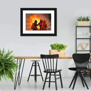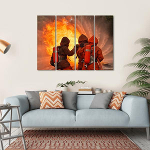 This canvas art captures the intense action of firefighters battling flames, showcasing their bravery as they spray water on the blaze. With a dramatic palette of orange, red, and brown, it brings a powerful energy to your space.