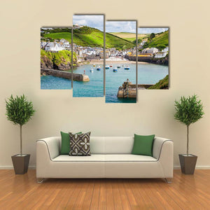 Capture the tranquil beauty of a coastal town with this canvas art featuring a scenic harbor filled with boats. The peaceful palette of blue and green enhances any wall, bringing a touch of nature indoors.