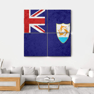 This canvas art features the Flag of Anguilla, showcasing a bold, patriotic design. The vibrant palette of blue, red, and white, combined with textured elements, creates a striking focal point that celebrates national pride.