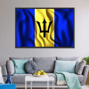 Celebrate your pride with the Flag of Barbados canvas wall art. Featuring bold blue, yellow, and black tones, this piece captures the essence of patriotism with its striking waving flag texture. Perfect for adding a modern touch to any room.