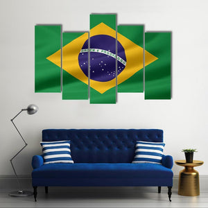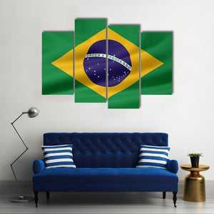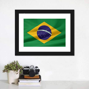 This canvas wall art features the Brazilian flag in a bold, graphic modern style. Symmetrical composition and a wavy texture suggest a waving flag, with stars and the motto "Ordem e Progresso" clearly visible. Suits modern home and room decor.