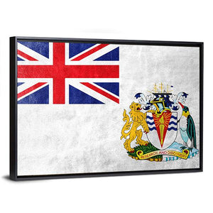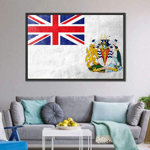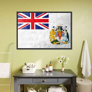 This canvas art features the Flag of the British Antarctic Territory, showcasing a vibrant palette of red, blue, white, and gold. With symbols of heritage like the union jack and a lion, it evokes a historical and heraldic mood that makes it a striking addition to your decor.