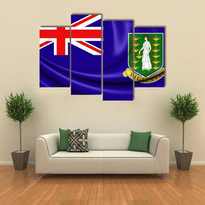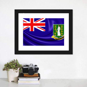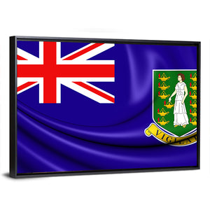 This canvas features the British Virgin Islands flag rendered in a graphic, realistic style. The rule-of-thirds composition and a blue, white, green and gold palette give it a calm, official, patriotic mood. It works well as room decor in modern homes or offices.