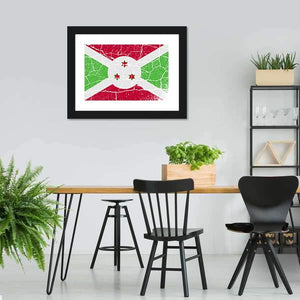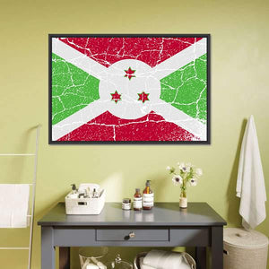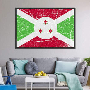 This Flag of Burundi canvas wall art features a striking design that embodies a sense of patriotism. With its vibrant red, green, and white palette, it showcases a symmetrical composition along with three distinctive stars, making it a meaningful decor piece for any setting.