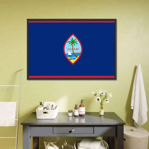 This canvas art features the iconic Guam flag, surrounded by a serene tropical scene with palm trees and a sailboat. The vibrant colors evoke a calm island mood, making it a lovely addition to any space.