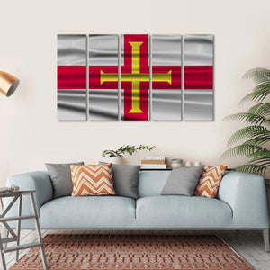 Capture the patriotic spirit of Guernsey with this striking flag canvas wall art. The bold red and silver colors, combined with a wavy texture that suggests fabric, create a decorative and stylized piece that stands out in any room.