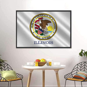 Celebrate the spirit of Illinois with this striking canvas wall art featuring the state seal. Its graphic design, adorned with vibrant colors and heraldic elements, creates an official and patriotic atmosphere, making it a powerful addition to any room.