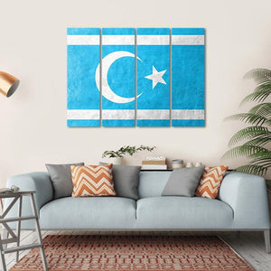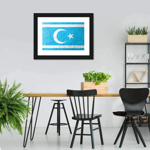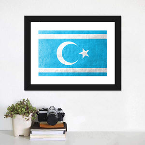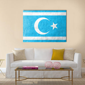 This canvas art features the Flag of Iraqi Turkmen, showcasing a striking blue background adorned with a crescent moon and star, complemented by white stripes. Its modern design and patriotic feel make it a powerful centerpiece for any space.