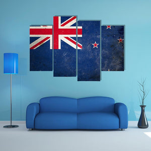 A centered depiction of the New Zealand flag rendered in a vintage, grunge style with worn and distressed texture. The blue, red, and white palette creates a patriotic, nostalgic mood that suits house and room decor.