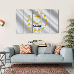 This canvas art features the Rhode Island state flag, highlighted by the anchor and thirteen surrounding stars. Its hopeful and patriotic vibe, with a modern design, makes it an inspiring addition to your wall decor.
