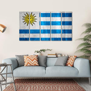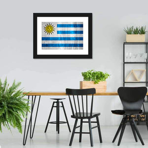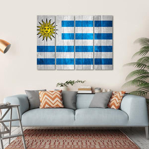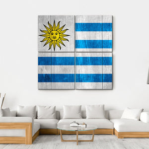 Showcase your love for Uruguay with this striking flag canvas art. The design features a bold blue and white palette, highlighted by a sun with a face and a classic striped background, creating a patriotic and historical vibe.