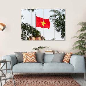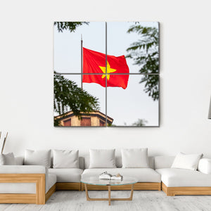 Celebrate your pride with the Flag of Vietnam Canvas Wall Art. This striking piece blends bold red and yellow hues with delicate green elements, showcasing the Vietnamese flag alongside trees and architectural features. It's perfect for those wanting to infuse their space with patriotic spirit.