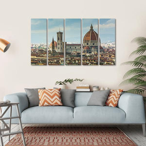 This canvas art captures the iconic Florence Cathedral and the picturesque Florence skyline. Featuring rich hues of blue, brown, and red, it reflects a grand historic atmosphere, making it a striking addition to any room decor.