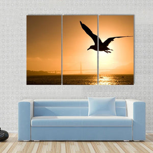 This captivating canvas features a silhouette of an eagle in flight, set against a dramatic sunset. Ideal for adding a serene and majestic touch to your living space.