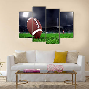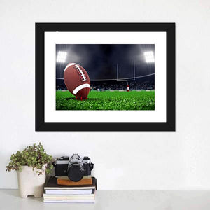 This striking canvas art captures the intensity of American football under stadium lights, featuring a vibrant green field and a football on a tee. The dramatic low-angle perspective creates an exciting atmosphere, making it a great addition to any sports-themed room.