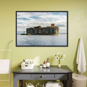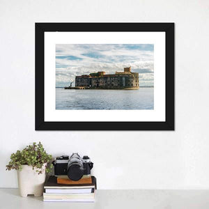 A wide, centered view of a stone fortress rising from the water, this canvas print carries a historic, imposing and calm atmosphere. Its blue, gray, and brown tones work well with modern home decor and neutral palettes.
