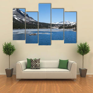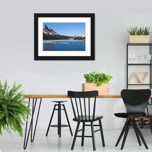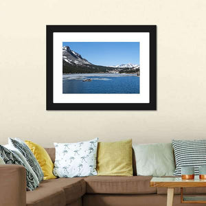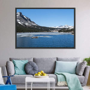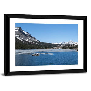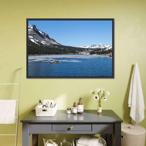 This canvas wall art depicts a serene mountain lake surrounded by snow-capped mountains and pine trees. The natural palette of blues and whites enhances the majestic beauty of Yosemite, making it a perfect addition to any nature-inspired decor.
