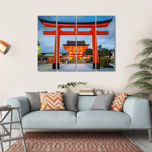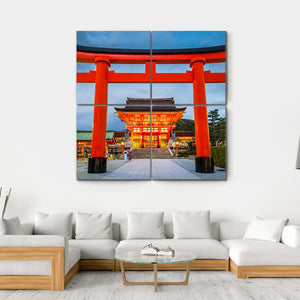 This canvas captures the serene beauty of the Fushimi Inari Taisha in Japan, featuring a striking Japanese torii gate against a dusk sky. The ornate temple architecture and glowing lanterns create a peaceful, spiritual atmosphere.