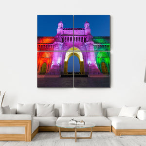 This captivating canvas art features the iconic Gateway of India, beautifully illuminated in vibrant colors. With a festive and grand atmosphere, it’s a striking addition to any wall decor that celebrates architectural beauty.
