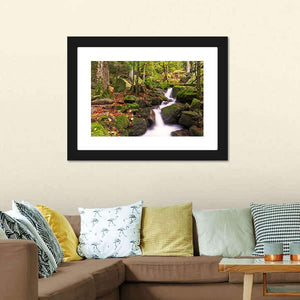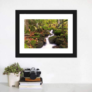The Gertelsbacher Waterfall canvas showcases a serene waterfall surrounded by lush forest, rocks, and trees. With its calming greens and earthy browns, this artwork evokes a peaceful, natural atmosphere that brings the beauty of outdoor landscapes into your space.