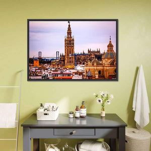 This canvas wall art beautifully captures the iconic Seville Cathedral and Giralda tower against a clear sky. The vibrant colors and ornate architecture evoke a historic, urban atmosphere, making it an excellent choice for modern décor.