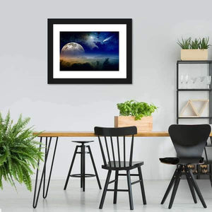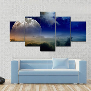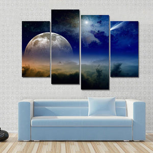 This canvas features a striking comet streaking through a dark blue sky, with a detailed moon nestled among clouds. The mystical and serene atmosphere invites awe and wonder, perfect for adding a touch of beauty to your space.