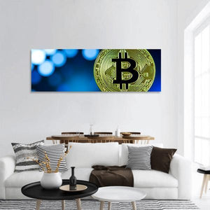 Golden Bitcoin On Keyboard Panoramic Canvas Wall Art