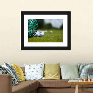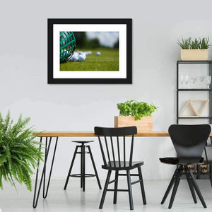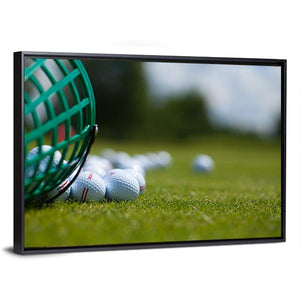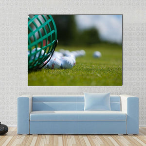 This canvas art features a serene scene of golf balls nestled in a green basket and scattered across a grassy terrain. The realistic portrayal captures the beauty of nature, making it a peaceful addition to sports-themed decor.