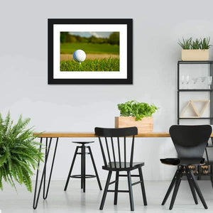This canvas art captures a close-up of a dimpled golf ball resting on vibrant green grass, evoking a peaceful outdoor atmosphere. With its blurred background and natural palette of greens and browns, this piece is ideal for sports enthusiasts looking to enhance their space.