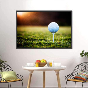 This canvas features a close-up of a golf ball poised on a tee. The calm and focused atmosphere, enhanced by a soft palette of green, white, and gold, makes it an ideal piece for sports enthusiasts looking to add a modern touch to their decor.
