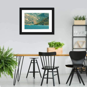 Capture the serene beauty of Montenegro with this realistic depiction of an island church, nestled against a tranquil bay and mountains. The calming palette of blues and greens enhances the picturesque scene, making it a perfect addition to your home decor.