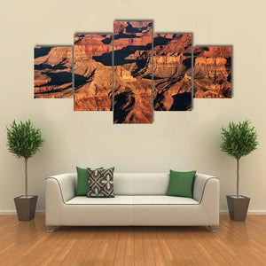 This striking canvas art showcases the Grand Canyon at sunrise, featuring majestic rock formations and deep shadows. The warm palette of reds, oranges, and browns creates a serene atmosphere, perfect for enhancing your living space.