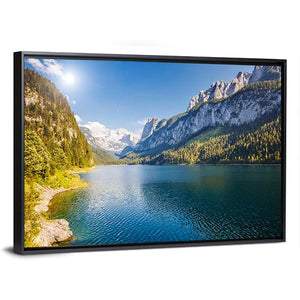 Azure Alpine Lake with Forested Mountains Canvas Wall Art
