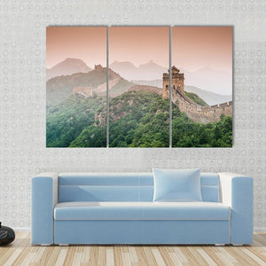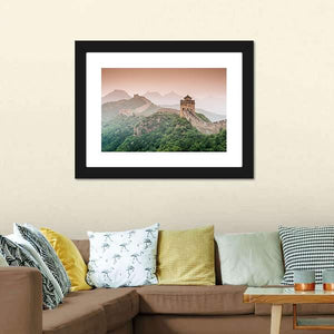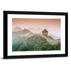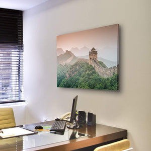 This landscape canvas art features the iconic Great Wall of China amid rolling mountains and a historic watchtower. Its misty atmosphere and lush vegetation evoke a sense of vastness, making it a captivating addition to your wall decor.