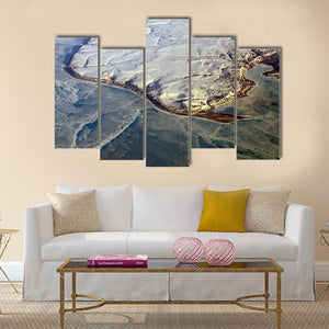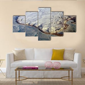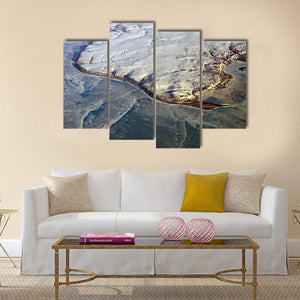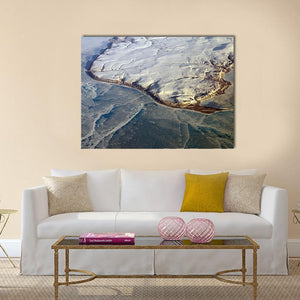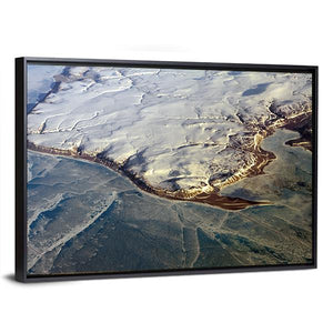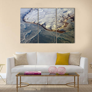 Experience the serene beauty of Greenland's icy landscapes with this canvas wall art. Featuring a stunning aerial view of riverbeds and cliffs, it captures the vastness and cold serenity of this natural wonder.