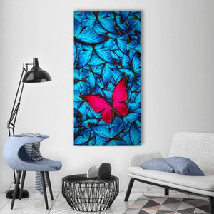 This enchanting canvas art features vibrant butterflies, with one bright pink butterfly standing out among serene blue hues. Its modern, abstract style makes it a delightful addition to any nature-themed décor.