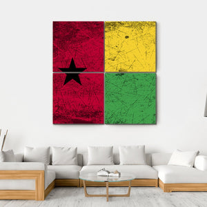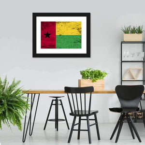 Show your pride with the Guinea-Bissau Flag Canvas Wall Art. Featuring a bold palette of red, yellow, green, and black, this piece evokes a patriotic vibe, complemented by a grunge style and a distressed texture that adds character. Its striking central black star enhances its artistic appeal.