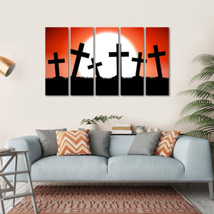 Celebrate the spooky season with this Halloween-themed canvas art. Featuring a bold design with a striking red moon, silhouettes of gravestones, and the word 'HALLOWEEN', it brings a festive yet eerie atmosphere to any space.