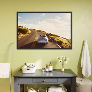 Celebrate the spirit of adventure with this charming canvas art featuring a convertible car cruising along a coastal road. The serene sunset paints a bright, summery atmosphere, reminding us of carefree moments shared with loved ones.