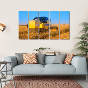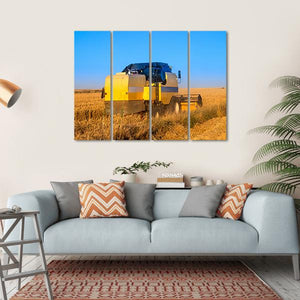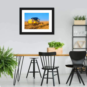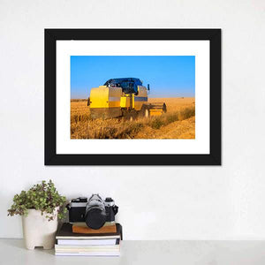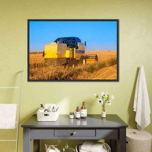 Capture the essence of a summer harvest with this striking canvas featuring a combine harvester gliding through golden wheat fields under a brilliant blue sky. The vibrant colors and dynamic scene evoke a sunny, agricultural mood, making it a delightful addition to any rustic décor.