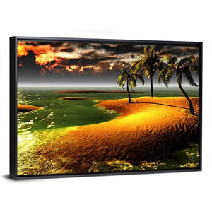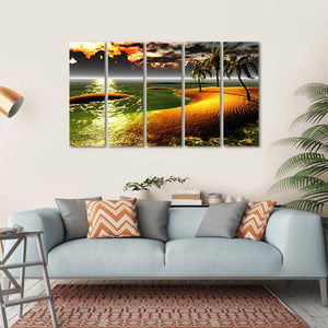 Bring the beauty of a tropical sunset to your space with this vibrant canvas wall art. Featuring a serene beach scene with swaying palm trees and glowing water beneath a dramatic sky, it creates a calming atmosphere perfect for relaxation.