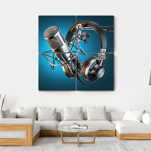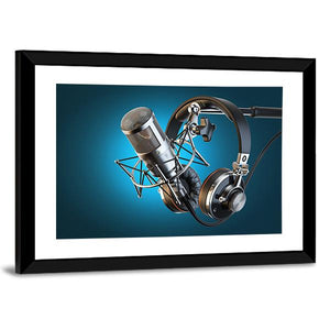 This striking canvas art features a studio microphone mounted on a shock mount alongside over-ear headphones. The professional and creative vibe makes it a fitting addition for music enthusiasts and modern decor lovers alike.