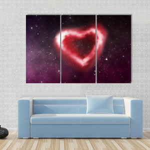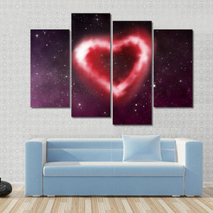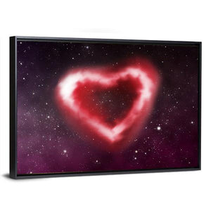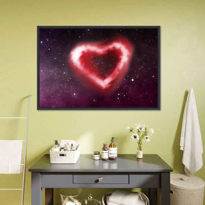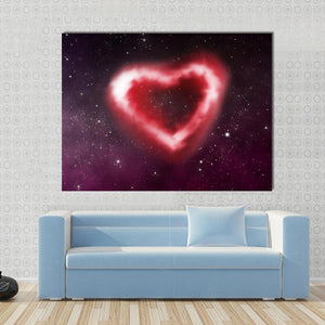This canvas art features a beautifully symmetrical heart-shaped nebula against a cosmic starfield backdrop. The romantic palette of red, white, purple, and black creates an ethereal atmosphere, making it a fitting addition to modern decor.