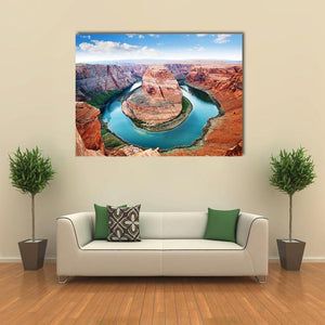 This breathtaking canvas captures the iconic Horseshoe Bend, showcasing the winding Colorado River surrounded by majestic rock formations. With a palette of rich blues, oranges, and greens, it evokes a serene, vast atmosphere, perfect for any landscape lover.