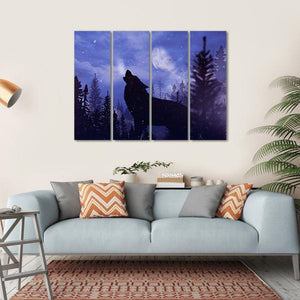 This canvas features a majestic wolf howling under a full moon in a serene, snowy forest. The blend of blue, purple, and black hues creates a mysterious and wild atmosphere, perfect for nature enthusiasts.