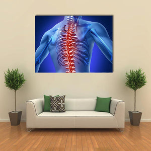 This modern canvas art features a centered, symmetrical design showcasing the human spine, rib cage, and skeleton. The striking blue and red palette creates a medical and scientific atmosphere, making it a compelling addition to your wall decor.