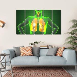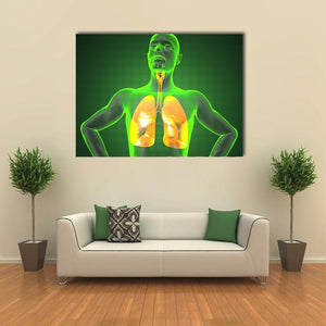 This striking canvas art showcases the intricate beauty of human anatomy, focusing on the lungs and respiratory system. With a vibrant palette of green, yellow, and orange, it brings an educational and scientific essence to your space.