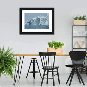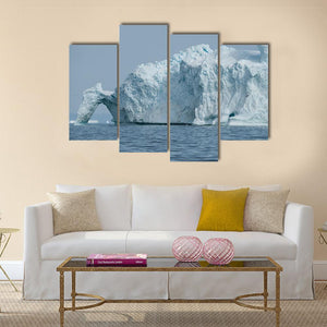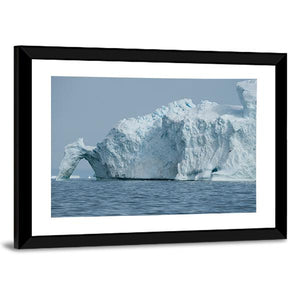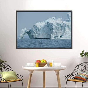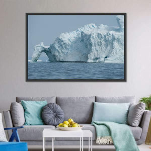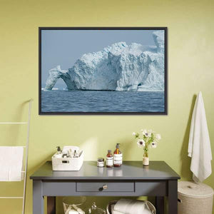 This canvas wall art captures a serene iceberg floating majestically in Disko Bay, framed by a natural archway. The cool blue and gray palette evokes the chill of the ocean, making it a striking addition to any modern decor.
