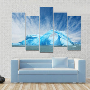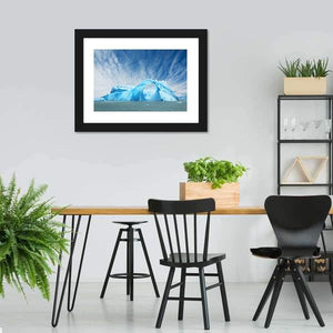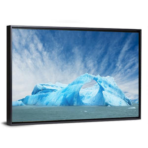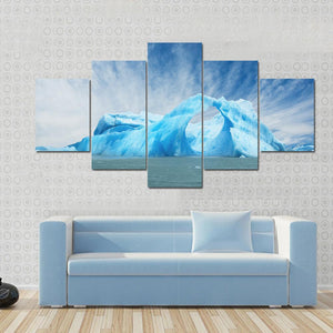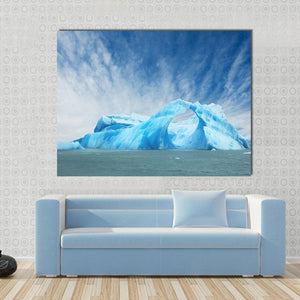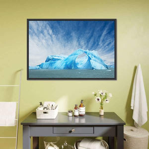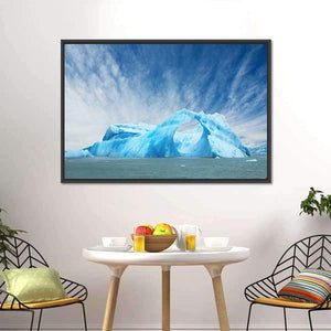 This canvas art captures a majestic iceberg in a serene landscape, surrounded by the vast ocean and wispy clouds. The cool palette of blues, whites, and greys evokes a tranquil atmosphere, making it a beautiful addition to any nature-inspired decor.