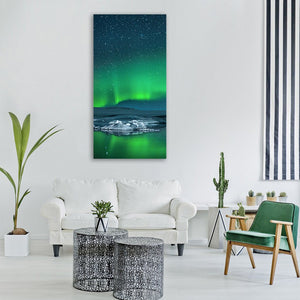 Icebergs Under Northern Lights Vertical Canvas Wall Art